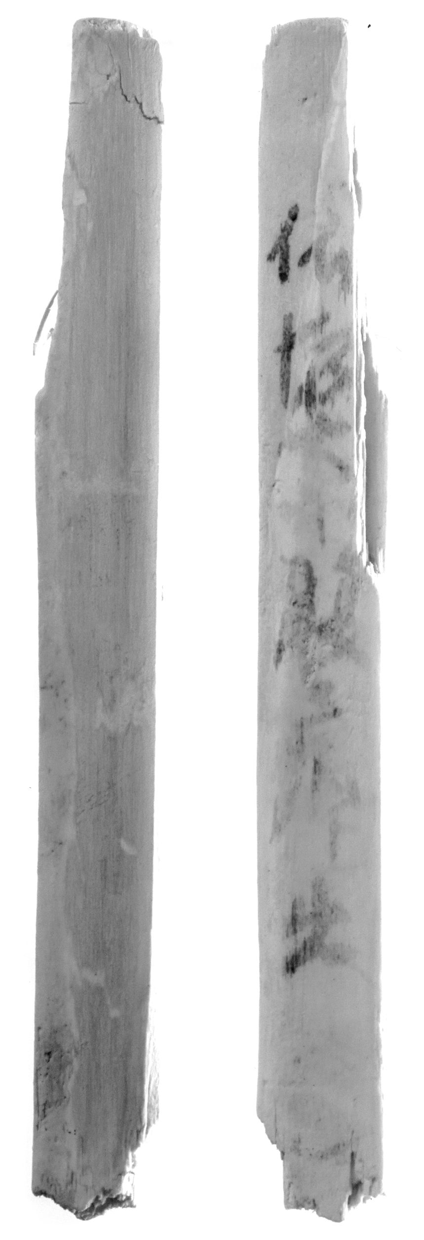 木簡説明 上端・左右両辺削り、下端折れ。板目。