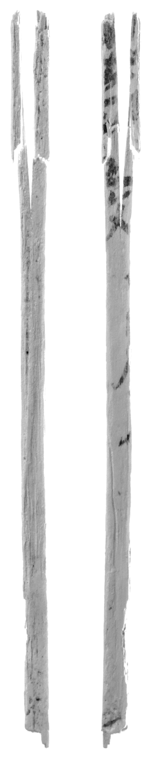 木簡説明 上下両端折れ、左右両辺割れ。板目。