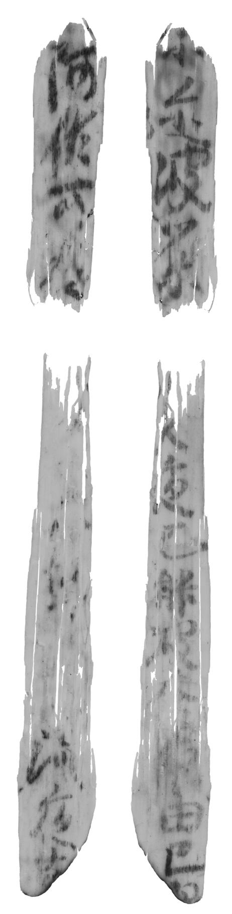 二片分離、下片の下端焼損、中欠。 |